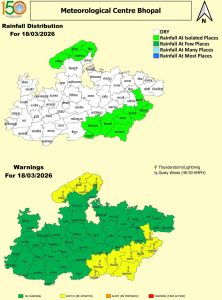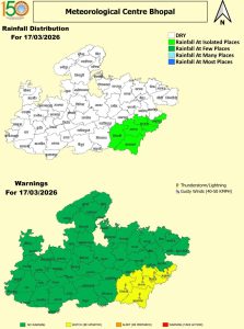 - 17 मार्च: सिवनी, बालाघाट, मंडला, डिंडौरी और अनूपपुर में हल्की बारिश।