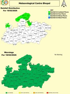 - इसके असर से 18 और 19 फरवरी को ग्वालियर-चंबल व सागर और उज्जैन संभाग के छतरपुर, ग्वालियर, मुरैना, भिंड, श्योपुर, दतिया, निवाड़ी, टीकमगढ़ और नीमच जिलों में बादलों की आवाजाही के साथ बूंदाबांदी हो सकती है। 19 फरवरी के आसपास अशोकनगर, गुना, भोपाल, इंदौर और राघवगढ़ में भी बादलों की आवाजाही देखने को मिल सकती है। वहीं न्यूनतम तापमान में 2 से 3 °C तक का इजाफा हो सकता है।