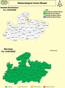 फिलहाल सोमवार-मंगलवार को मौसम का मिजाज यूही बना रहेगा लेकिन 16 फरवरी को सक्रिय होने वाले पश्चिमी विक्षोभ के प्रभाव से 18-19 फरवरी को बादल छाने के साथ कहीं-कहीं बूंदाबांदी या हल्की बारिश की संभावना जताई गई है। इसका असर ग्वालियर-चंबल, सागर और उज्जैन संभाग में देखने को मिल सकता है।