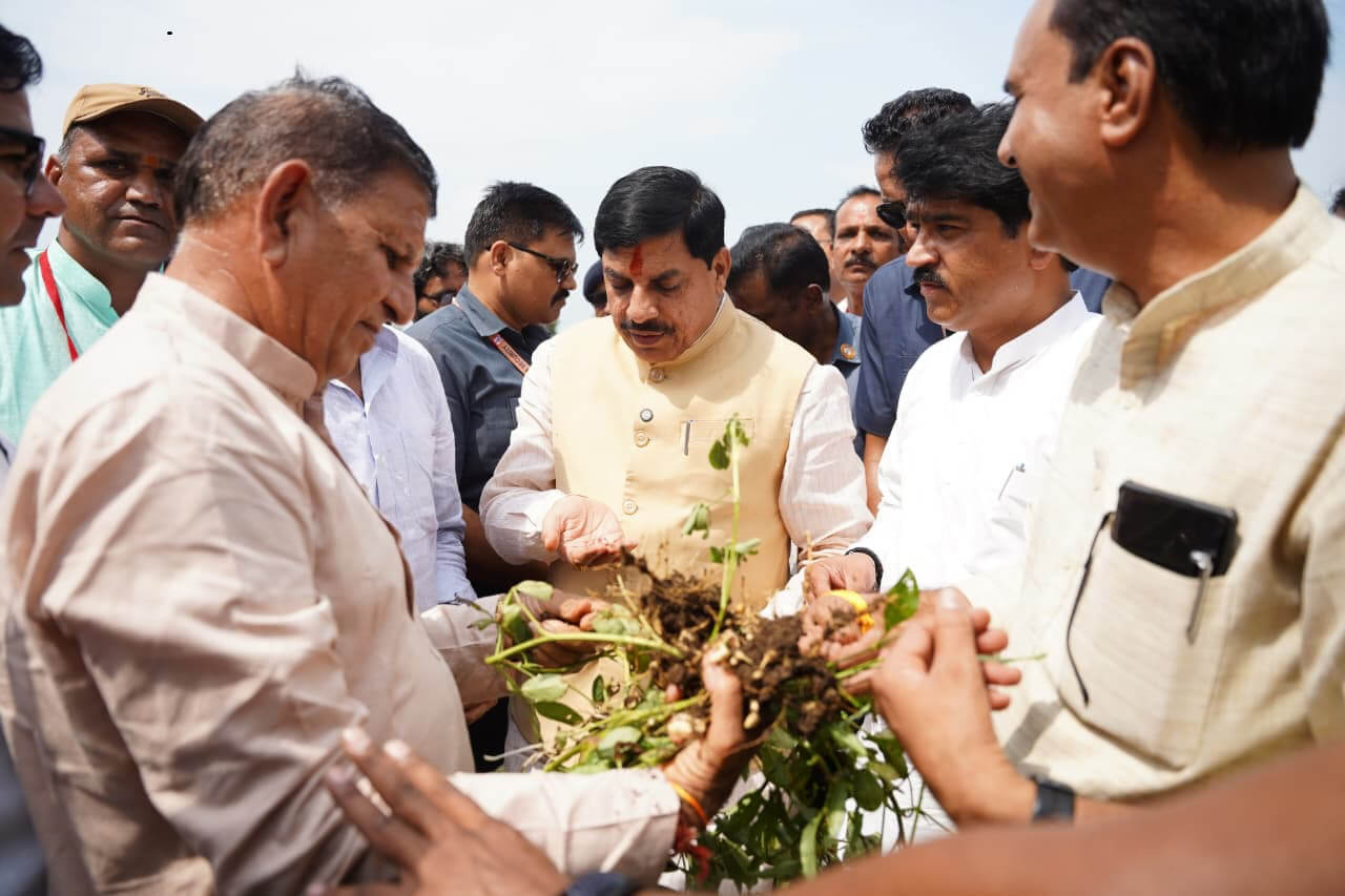 मध्य प्रदेश के मुख्यमंत्री डॉ मोहन यादव ने आज शाजापुर जिले के ग्राम पंचायत खड़ी में आयोजित म कृषि चौपाल में अन्नदाताओं से संवाद किया। उन्होंने किसानों द्वारा दी गयी जानकारी पर अल्प वर्षा के कारण क्षतिग्रस्त हुई सोयाबीन की फसल का खेतों में जाकर निरीक्षण किया। सभी कलेक्टर व एसपी को निर्देश दिए हैं कि प्राकृतिक आपदा से हुए नुकसान का तत्काल सर्वे करें, जिससे हमारे किसानों की फसल क्षति की अधिकतम भरपाई सुनिश्चित हो सके।