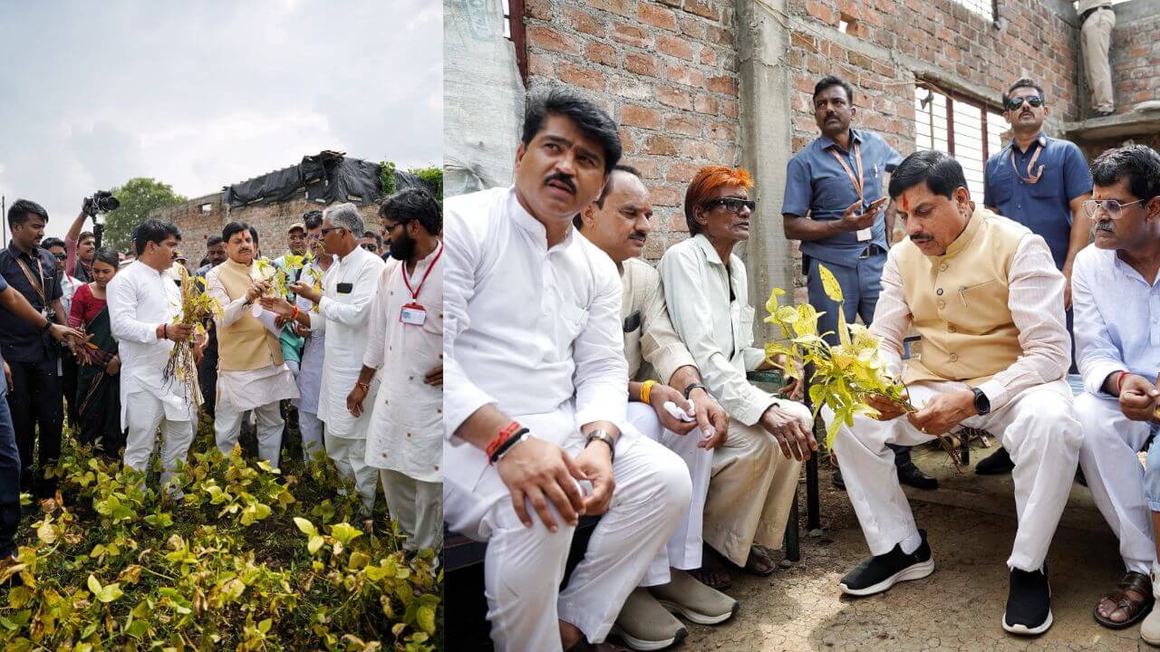 मुख्यमंत्री डॉ. यादव ने ग्राम खड़ी के किसान परवत सिंह बगाना के निवास पर जाकर उनसे सोयाबीन की खराब हुई फसल से हुए नुकसान की जानकारी ली।
