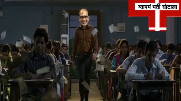 भोपाल। मध्यप्रदेश में वीडियो वार जारी है। सोशल मीडिया पर बीजेपी और कांग्रेस को एक दूसरे पर वीडियो के जरिए हमले जारी हैं। अब एक और वीडियो सामने आया है, जिसमें व्यापमं घोटाले पर बनी फिल्म चीट इंडिय��� के टीजर को एडिट कर उसमें मुख्यमंत्री शिवराज सिंह चौहान पर निशाना साधा गया है।