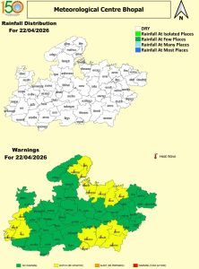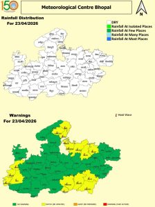 भोपाल मौसम केंद्र के मुताबिक, पश्चिमी विक्षोभ, चक्रवातीय परिसंचरण का प्रभाव बना हुआ है। उत्तर भारत के ऊपर, माध्य समुद्र तल से 12.6 किमी ऊंचाई पर लगभग 148 किमी/घंटा की गति से पश्चिमी जेट स्ट्रीम हवाएं बह रही हैं। एक नया पश्चिमी विक्षोभ 23 अप्रैल 2026 से पश्चिमी हिमालयी क्षेत्र को प्रभावित करने की संभावना है। इसके असर से आने वाले दिनों में तापमान में और इजाफा होगा और भीषण गर्मी पड़ेगी। मई में तापमान के 45 °C तक पहुंचने और लू चलने की संभावना जताई गई है।