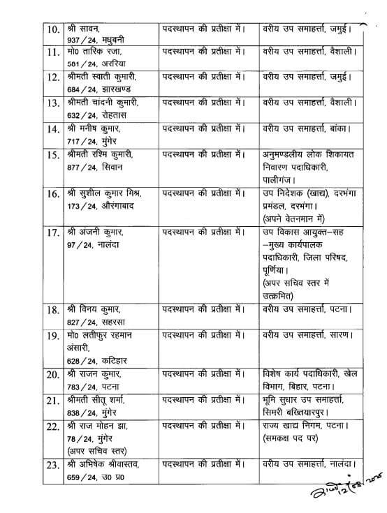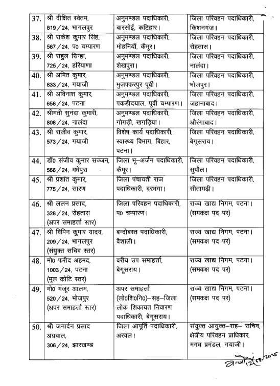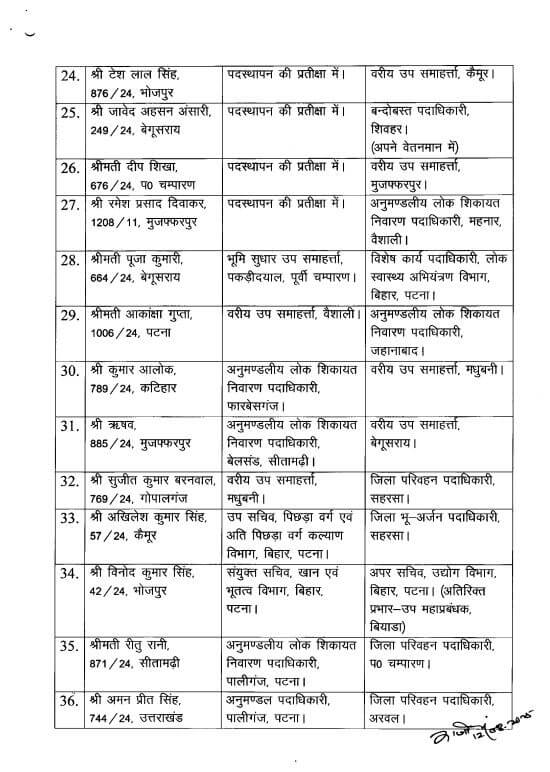 - पालीगंज के अनुमंडल पदाधिकारी अमनप्रीत सिंह को अरवल का जिला परिवहन पदाधिकारी