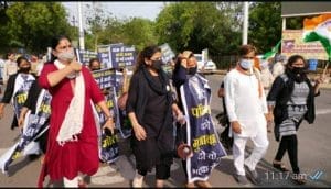 कोरोना से में जान गंवा चुके लोगों के परिजनों को चार चार लाख रुपये की आर्थिक सहायता दिए जाने की मांग को लेकर ग्वालियर महिला कांग्रेस की जिला अध्यक्ष रुचि गुप्ता ने अपने समर्थकों और कांग्रेस कार्यकर्ताओं के साथ शनिवार को राजमाता चौराहे पर प्रदर्शन किया था, प्रदर्शन में प्रधानमंत्री नरेंद्र मोदी और शिवराज सिंह चौहान की अर्थी जलाने का दावा किया गया। महिला नेत्रियाँ सरकार विरोधी नारे लिखे पोस्टर गले में पहने हुई थी। और प्रधानमंत्री एवं मुख्यमंत्री के खिलाफ नारेबाजी कर रही थी। खास बात ये थी कि प्रदर्शन के दौरान कोरोना गाइड लाइन के महत्वपूर्ण नियमों में से एक सोशल डिस्टेंसिंग का किसी ने भी ध्यान नहीं रखा।