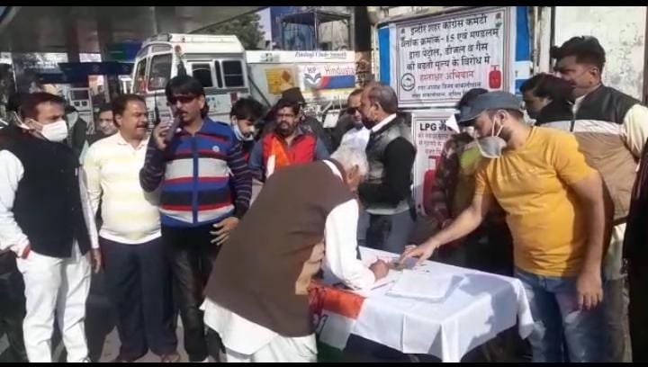 इंदौर, आकाश धोलपुरे। मध्यप्रदेश की आर्थिक राजधानी इंदौर में बढ़ती महंगाई को लेकर प्रदेश सरकार और केंद्र सरकार के खिलाफ कांग्रेस ने जमकर विरोधस्वरूप नारेबाजी की। दरअसल, इंदौर के राजमोहल्ला क्षेत्र में स्थित पेट्रोल पंप के समीप कांग्रेस कार्यकर्ताओं ने हस्ताक्षर अभियान चलाया और आम लोगो से मांग की है कि वो भी विरोध स्वरूप हस्ताक्षर करे ताकि सरकार तक आम लोगो की मांग पहुंचाई जा सके। बता दे कि हाल ही के दिनों में यकायक पेट्रोल और डीजल के दामो में इतनी तेजी आई है कि पेट्रोल के दाम तो शतक लगाने को आतुर है।