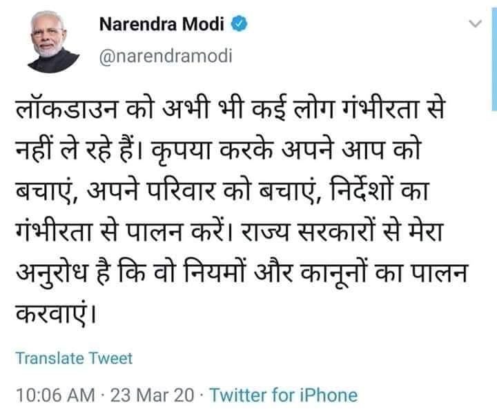 कोरोना वायरस की बढ़ती तीव्रता के कारण एहतियात के तौर पर देश के कई राज्यों ने लॉक डाउन घोषित कर दिया है। मध्यप्रदेश में भी कई जिलों में लॉक डाउन घोषित है। बावजूद इसके कई जगह कुछ लोग इसे गंभीरता से नहीं ले रहे इसे देखते हुए प्रधानमंत्री नरेंद्र मोदी ने ट्वीट कर नाराजगी जताई और राज्य सरकारों से सख्त कदम उठाने के लिए कहा। पीएम के ट्वीट के बाद ग्वालियर आईजी(एडीजीपी) ने तुरंत अपनी रेंज के पुलिस अधीक्षकों को लॉक डाउन का उल्लंघन करने वालों से सख्ती से निपटने के निर्देश दिये।