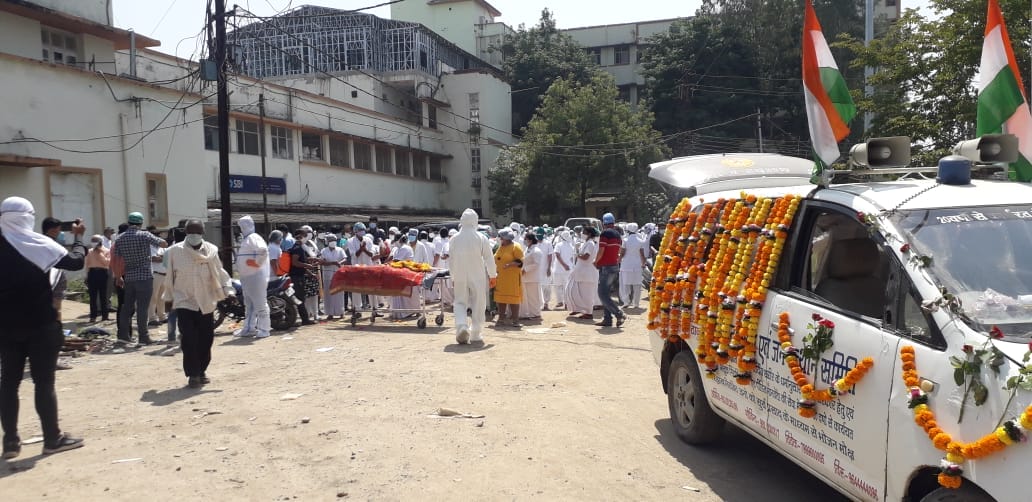 कोरोना से खत्म हुई 40 वर्षीय नर्स की जब अंतिम यात्रा निकाली तो पूरा मेडिकल स्टाफ (medical staff) एकत्रित हो गया। हालांकि कोविड की गाइडलाइन (covid’s Guideline) को देखते हुए जबलपुर प्रशासन (Jabalpur Administration) ने ज्यादा लोगों को अंतिम यात्रा में शामिल नहीं होने दिया। कोरोना वॉरियर्स की अंतिम यात्रा (Last rite to Corona Warriors) मेडकिल कालेज से चोहानी शमशान घाट (Chohani Crematorium) तक शहीद (martyr) की तरह निकाली गई।