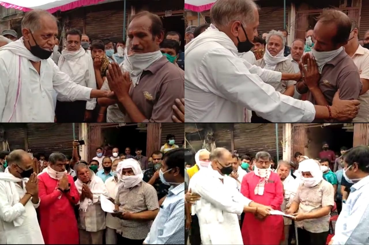 सोमवार को हुए भीषण अग्निकांड में एक ही परिवार के सात सदस्यों की मौत के बाद मुख्यमंत्री द्वारा घोषित की गई आर्थिक सहायता राशि के चैक सौंपने आज जिला प्रशासन और जन प्रतिनिधि पहुंचे और पीड़ित गोयल परिवार को 28 लाख की सहायता के दस्तावेज सौंपे। इस मौके पर बहादुरी का परिचय देकर बच्ची की जा बचाने वाले युवक को नगद राशि देकर सम्मानित किया गया।
