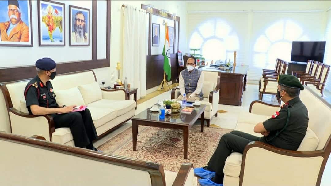 आज निवास पर भारतीय सेना के सुदर्शन चक्र कोर कमांडर श्री अतुल्य सोलंकी और ब्रिगेडियर श्री आशुतोष शुक्ला ने भेंट की। देशभर में बढ़ रहे #COVID19 संक्रमण को नियंत्रित करने में भारतीय सेना मध्यप्रदेश का साथ देगी, जिसके लिए मैं उन्हें धन्यवाद देता हूँ। pic.twitter.com/gpq1YLVJl0
