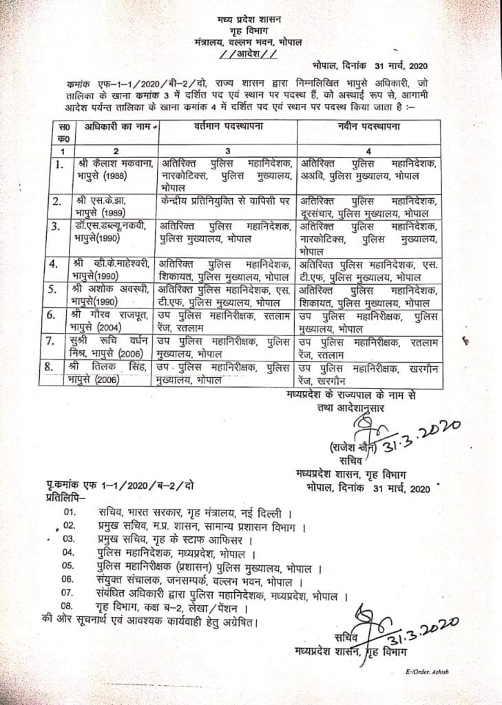 Home/Breaking News/Ips Transfer See Listप्रदेश में IPS ट्रांसफर, देखिये लिस्टWritten by:न्यूज डेस्क, Mp Breaking NewsListenSHAREPublished:31 March 2020 at 18:28 ISTLast Updated:31 March 2020 at 18:32भोपाल मध्यप्रदेश में आईपीएस ट्रांसफर हुए है, लिस्ट देखिये यहां- ये भी पढ़ें1CBI का बड़ा एक्शन, सेंट्रल GST सुप्रिटेंडेंट और इंस्पेक्टर 4 लाख की रिश्वत लेते गिरफ्तार2यमुना एक्सप्रेसवे पर भीषण सड़क हादसा, 7 बसें और 3 कार टकराई, कोहरे के चलते हुआ हादसा3फर्जी दस्तावेजों से IAS बने संतोष वर्मा पर CM मोहन यादव का कड़ा एक्शन, बर्खास्तगी के लिए केंद्र को भेजा जा रहा प्रस्ताव4अजमेर दरगाह और कलेक्ट्रेट को बम से उड़ाने की धमकी, कलेक्टर के पास आया मेल, सुरक्षा एजेंसियां सतर्क
