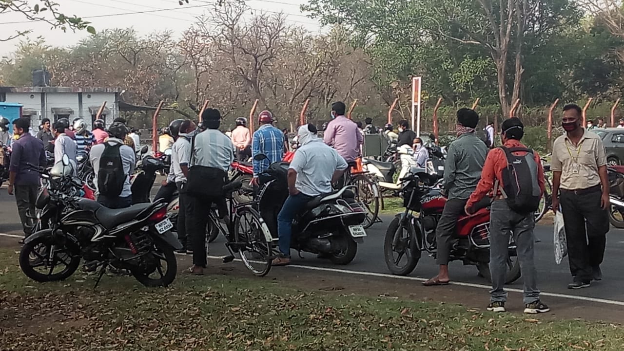कर्मचारी नेताओं ने सभी कर्मचारियों से अपील भी की थी कि भीड़ न लगाएं और घरों पर ही रहे पर अनुपस्थिति के डर से ज्यादा से ज्यादा कर्मचारी फैक्ट्री पहुँच गए।हालांकि आज जो कर्मचारी फैक्ट्री पहुँचे है वो स्टेट में रहने वाले है पर भीड़ ऐसी लग रही थी मानो सामान्य समय हो।इधर फैक्ट्री के जीएम रविकांत माहेश्वरी का कहना था कि कलेक्टर ने जो निर्देश और नियमो का पालन करने निर्देशित किया था उसको फॉलो किया गया है पर असल मे फैक्ट्री के बाहर क्या हालात थे वो कुछ और ही नज़ारा बया कर रहे थे। बहरहाल अब देखना ये होगा कि इस भीड़ को देखने के बाद जिला प्रशासन आगे क्या निर्णय लेता है।