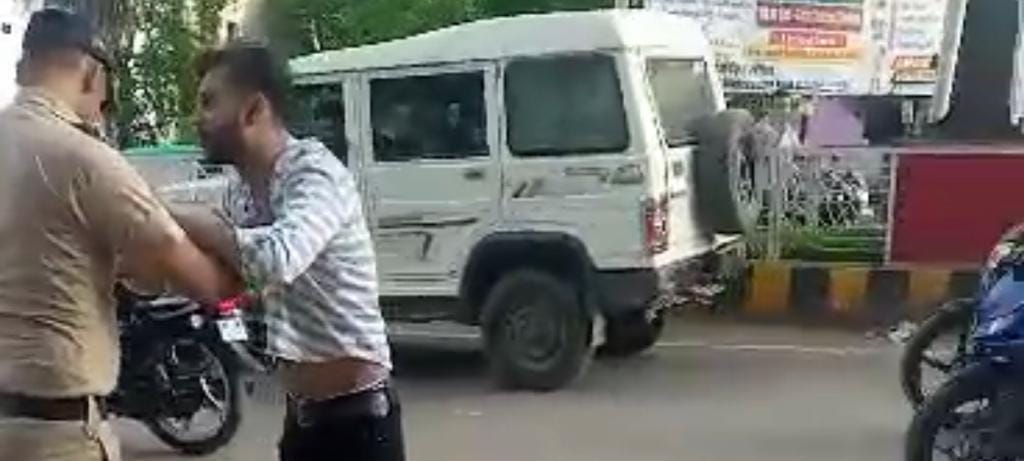 Young man beat the police constable : प्रदेश में अपराधियों के हौसले किस कदर बुलंद हो गए हैं, ये छतरपुर की घटना से पता चलता है। यहां छेड़खानी कर रहे युवक को जब पुलिस ने रोकना चाहा तो उसने पुलिसकर्मी की ही पिटाई कर दी। मारपीट का ये वीडियो अब सोशल मीडिया पर वायरल हो रहा है।
