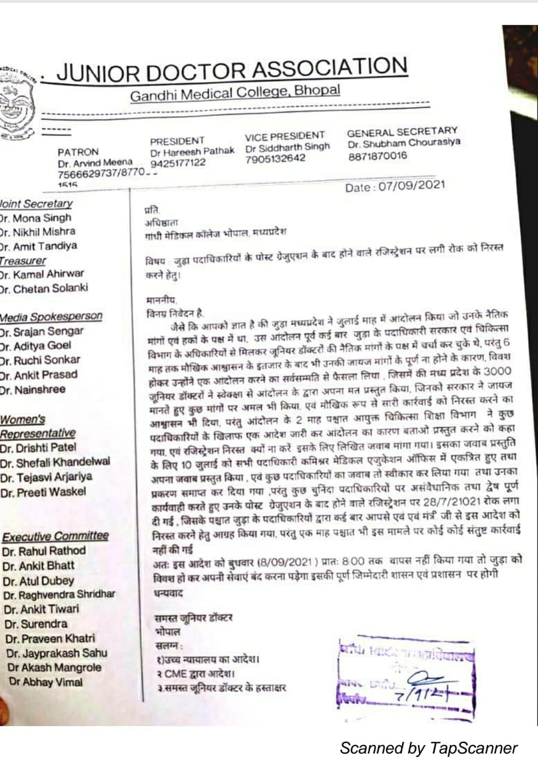 भोपाल, डेस्क रिपोर्ट। आज से मध्यप्रदेश (MP) के पांचों मेडिकल कॉलेज तथा भोपाल में जूनियर डॉक्टर्स (JUDA) आज सुबह 8 बजे से हड़ताल पर चले गए हैं। इस दौरान उन्होने इमरजेंसी तथा ओपीडी में अपनी सारी सेवाएं बंद कर दी है। जूनियर डॉक्टर्स एसोसिएसन के अध्यक्ष डॉ. हरीश पाठक ने एमपी ब्रेकिंग न्यूज से बातचीत में कहा कि मांगें न मानी जाने तक वे हड़ताल पर रहेंगे।