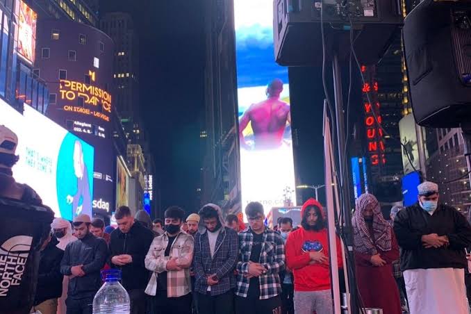 यूं तो नमाज़ पढ़ना किसी भी मुसलमान के लिए एक रोज़मर्रा की जिंदगी की बात है लेकिन अमेरिका के न्यूयॉर्क शहर के टाइम्स स्क्वायर पर पढ़ी गई नमाज़ ने इतिहास रच दिया। यह इतिहास में पहली बार हुआ जब न्यूयॉर्क के टाइम्स स्क्वायर पर नमाज़ अदा की गई। कई हजारों की तादाद में इकट्ठे होकर मुसलमानों ने यहां नमाज़ अदा की।