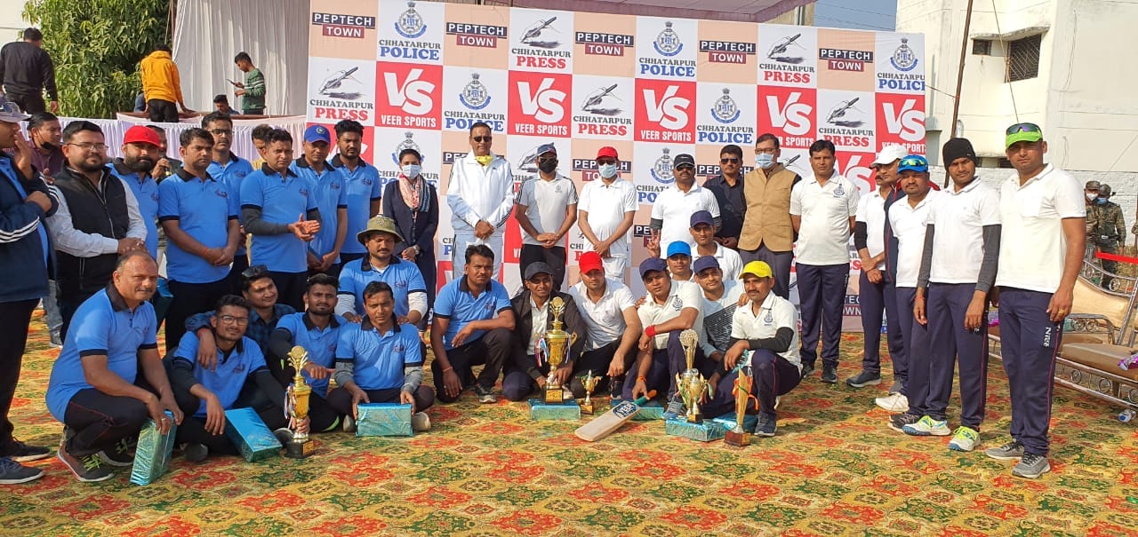 छतरपुर, संजय अवस्थी। शहर के नौगांव रोड स्थित पेप्टेक टाउन में रविवार को खेले गए पुलिस और पत्रकारों के तीसरे मैत्री मुकाबले को भी पुलिस टीम ने शानदार अंदाज में अपने नाम करते हुए ट्रॉफी पर कब्जा कर लिया। कलेक्टर शीलेन्द्र सिंह की अगुवाई में उतरी पुलिस टीम की ओर से हिनौता थाना प्रभारी अतुल दीक्षित ने 175 रन की शतकीय पारी खेलकर अपनी टीम को शानदार जीत दिलाई।