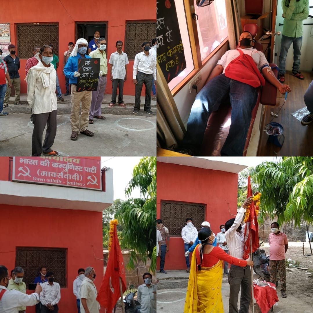 आज देश में कोविड-19(COVID-19) जैसी महामारी से लड़ रहे मेडिकल स्टाफ(medical staff), पुलिस स्टाॅफ(police staff) सहित सफाई कर्मचारियों को सुरक्षा(protection) के किट(kit) उपलब्ध नहीं हैं, वे अपनी जान जोखिम में डालकर अपने फर्ज को अंजाम दे रहे हैं, सीटू इन सभी जांजाबों को मई दिवस पर सलाम पेश करती है और सरकार से मांग करती है कि इनकी सुरक्षा के लिए आवश्क सामग्रियों की तत्काल व्यवस्था करे। सीटू कार्यालय पर झण्डा फहराने के बाद रक्तदान शिविर लगाया गया जिसमें रक्तदान करने वालों में अखिलेश यादव, प्रीति सिंह, युसूफ अब्बास, गालिब अली, बाबू कुरैशी, शमीम मोहम्मद, प्रकाश करौठिया, अमित सक्सेना, विक्रम कुशवाह, सन्नी कुशवाह, सगरदीप सहित अनेक साथियों ने रक्तदान किया। इस अवसर पर माक्र्सवादी कम्युनिस्ट पार्टी के राज्य सचिव कामरेड जसविंदर सिंह जी भी विशेष रूप से उपस्थित थे।