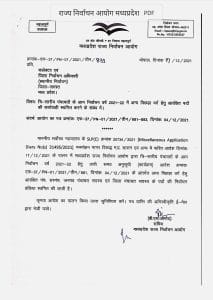 भोपाल, डेस्क रिपोर्ट। सर्वोच्च न्यायालय के आदेशों का पालन करते हुए मध्य प्रदेश राज्य निर्वाचन आयोग ने पत्र जारी कर अन्य पिछड़ा वर्ग हेतु आरक्षित पदों की प्रक्रिया को स्थगित करने का आदेश दिया है और पत्र में जारी किए गए आदेश का पालन सुनिश्चित करने की बात कही है।