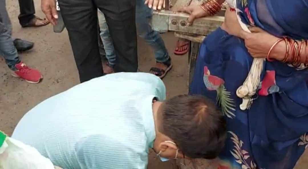 पैर छूकर बोले ऊर्जा मंत्री "मास्क नहीं तो सामान नहीं"@ChouhanShivraj @JM_Scindia @BJP4MP pic.twitter.com/hYOsCuKt6F