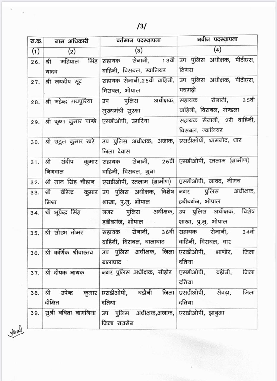 यह भी पढ़े.. Transfer: मध्य प्रदेश में IPS अधिकारियों के तबादलें, यहां देखें लिस्ट