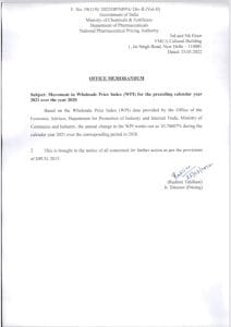 एनपीपीए द्वारा जारी नोटिस में बताया गया है, “आर्थिक सलाहकार, वाणिज्य और उद्योग मंत्रालय द्वारा उपलब्ध कराए गए थोक मूल्य सूचकांक (WPI) आंकड़ों के आधार पर, थोक मूल्य सूचकांक में वार्षिक परिवर्तन कैलेंडर वर्ष 2021 के दौरान 2020 में इसी अवधि की तुलना में 10.76607% में वृद्धि होगी।”