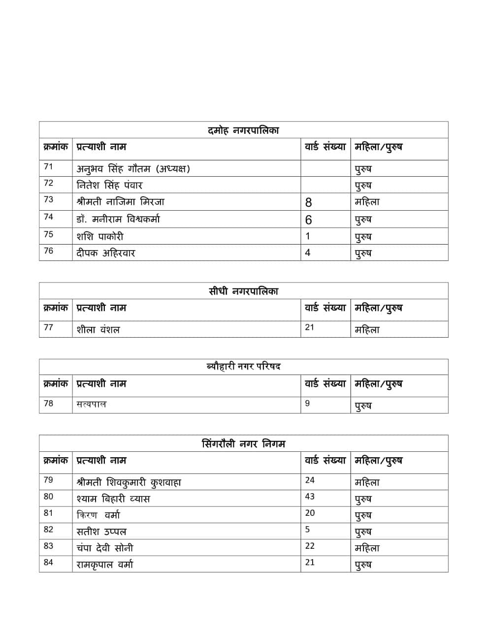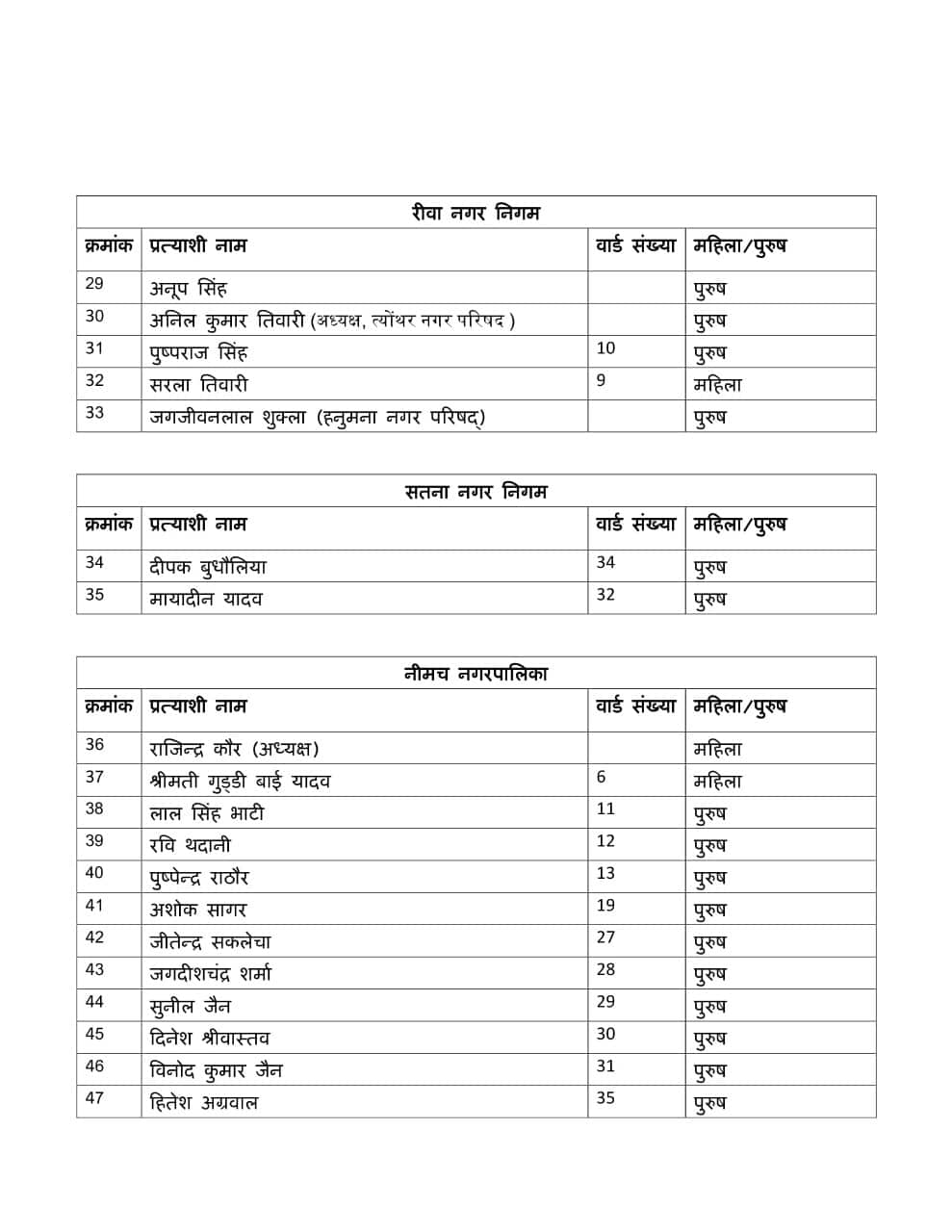 दरअसल मध्य प्रदेश (madhya pardesh) में मार्च के पहले सप्ताह में चुनाव की तारीखों का ऐलान किया जा सकता है। मतदाता सूची (voter list) के अंतिम प्रकाशन के बाद किसी भी दिन तारीखों के ऐलान किया जा सकता है। इससे पहले पार्टियों ने चरणबद्ध तरीके से अपनी अपनी कार्यशैली पर कार्य करना शुरू कर दिया है। इस बीच दावेदारों के आवेदन की छटनी जारी है। इसके अलावा आधिकारिक तौर पर आम आदमी पार्टी ने प्रत्याशियों की पहली सूची जारी कर दी है। महापौर पद के लिए भी आम आदमी पार्टी सूची जारी कर दी है। इसके लिए पार्टी ने सभी जिलों में प्रत्याशी चयन समिति का गठन किया है।