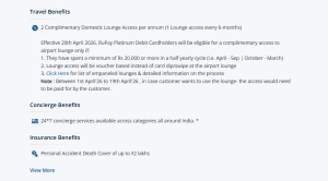 20 अप्रैल से एयरपोर्ट लाउंज एक्सेस वाउचर आधारित होगा। पहले यह सुविधा कार्ड डीप/स्वाइप के जरिए मिलती थी। लेकिन अब ऐसा नहीं होगा। यदि कोई 1 अप्रैल से लेकर 19 अप्रैल 2026 के बीच लाउंज का इस्तेमाल करना चाहता, तो उसके लिए भुगतान ग्राहकों को ही करना होगा। बाकी सभी सुविधाएं पहले की तरह ही जारी रहेंगी।