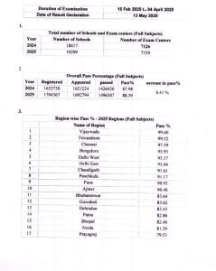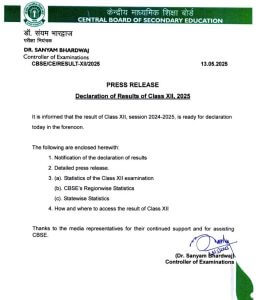 CBSE Board Result 2025: केन्द्रीय माध्यमिक शिक्षा बोर्ड ने 13 मई सुबह 11 बजे सीबीएसई बोर्ड कक्षा 12वीं के परिणाम घोषित कर दिए हैं। इसी के साथ लाखों छात्रों और अभिभावकों का इंतजार खत्म हुआ। स्टूडेंट्स ऑफिशियल वेबसाइट www.cbse.gov.in पर जाकर विषयवार अंक चेक कर सकते हैं। इसके अलावा डिजिलॉकर और उमंग ऐप पर भी परिणाम उपलब्ध होंगे।
