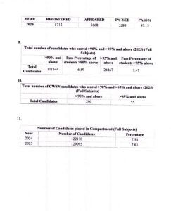 इस पास पास होने वाले छात्रों की संख्या में वृद्धि देखी गई है। पासिंग प्रतिशत 88.39% रहा, जो पिछले वर्ष 87.98% था। इस साल कुल 1704367 छात्रों ने रजिस्ट्रेशन किया था। 1692794 स्टूडेंट्स एग्जाम में शामिल हुए। 1496307 विद्यार्थी ही परीक्षा में पास हुए। 6.59% विद्यार्थियों ने बारहवीं में 90% से अधिक अंक प्राप्त किए हैं। वहीं 95% अंक प्राप्त करने वालों की संख्या इस साक 24867 है।