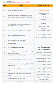 जेईई मेंस में 2.5 लाख रैंक लाने वाले उम्मीदवारों को ही जेईई एडवांस्ड में शामिल होने की अनुमति होगी। पात्र उम्मीदवार 23 अप्रैल से लेकर 2 मई तक आधिकारिक वेबसाइट http://jeeadv.ac.in पर जाकर आवेदन कर सकते हैं। परीक्षा का आयोजन 17 मई को होने वाला है। जो छात्र जेईई एडवांस्ड के लिए पात्र नहीं है, उन्हें जेईई मेंस स्कोर के आधार आधार पर एनआईटी, जीएफटीआई, IIIT और अन्य इंजीनियरिंग संस्थानों में दाखिला मिलेगा। हालांकि आईआईटी में एडमिशन के लिए जेईई एडवांस्ड स्कोर अनिवार्य होता है।
