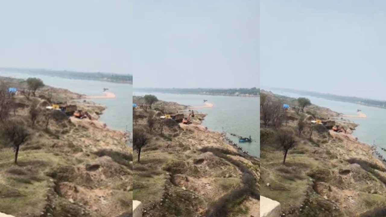 छतरपुर: मध्य प्रदेश के छतरपुर जिले में गोयरा थाना क्षेत्र का रामपुर घाट इन दिनों अवैध रेत खनन का एक बड़ा केंद्र बन गया है। आरोप है कि यहां यूफोरिया माइन्स रेत कंपनी द्वारा खनिज अधिकारी अमित मिश्रा के कथित संरक्षण में दिन-रात नदी का सीना चीरकर रेत का अवैध कारोबार किया जा रहा है। नेशनल ग्रीन ट्रिब्यूनल (NGT) के सख्त दिशानिर्देशों को दरकिनार करते हुए भारी-भरकम L&T मशीनों और लिफ्टों का इस्तेमाल सीधे नदी की मुख्य धारा में किया जा रहा है।
