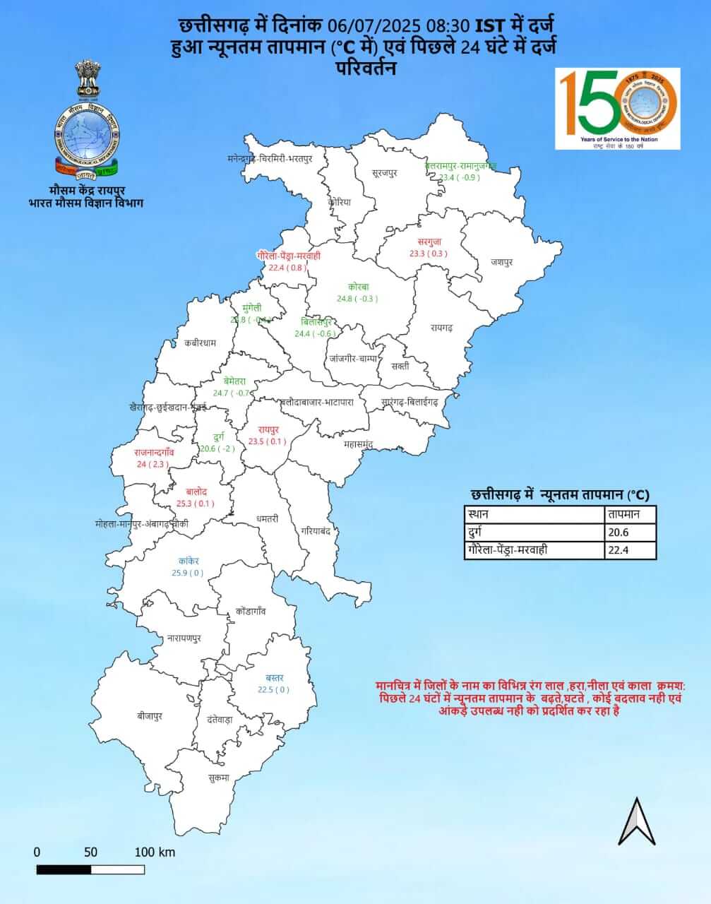 - दुर्ग जिले में 121.2 मि.मी., कबीरधाम में 143.9 मि.मी., राजनांदगांव में 109.2 मि.मी., मोहला-मानपुर-अंबागढ़ चौकी में 295.3 मि.मी., खैरागढ़-छुईखदान-गंडई में 132.8 मि.मी., बालोद में 171.5 मि.मी. और बस्तर जिले में 394.8 मि.मी. औसत वर्षा रिकार्ड हुई है।