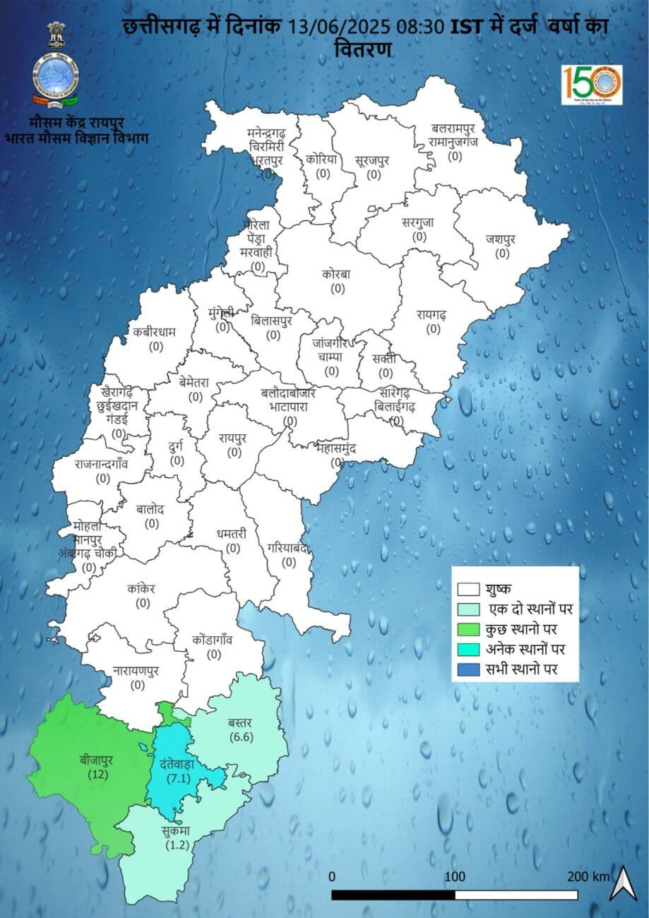 - सुकमा, बीजापुर, दक्षिण बस्तर दंतेवाड़ा, बस्तर, नारायणपुर, कोंडागांव, उत्तर बस्तर कांकर में मेघगर्जन / आकाशीय बिजली / अचानक तेज हवा (30-40 KMPH) / वर्षा।