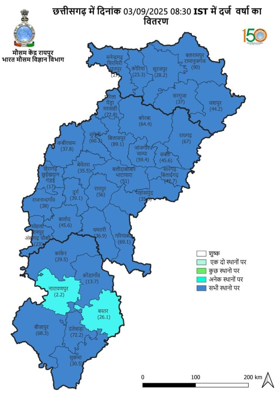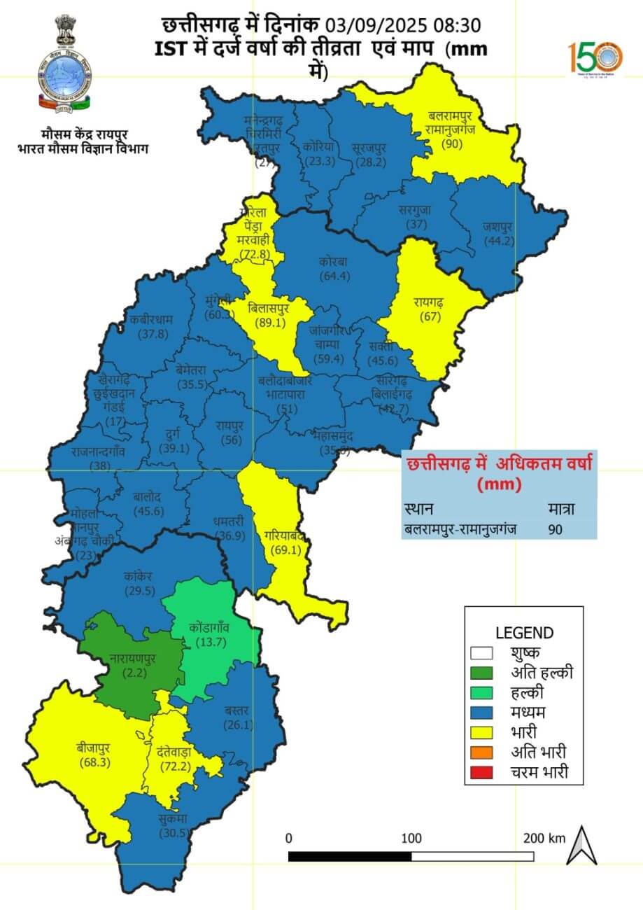 छत्तीसगढ़ : प्रदेश में अब तक 940.7 मि.मी. औसत वर्षा दर्ज