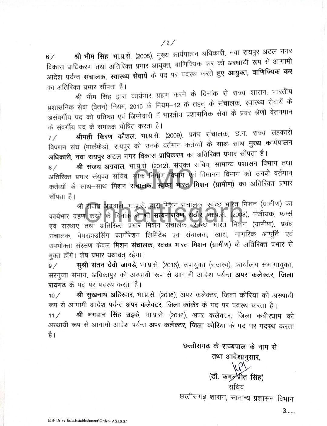 रायपुर, डेस्क रिपोर्ट। छत्तीसगढ़ में एक साथ 11 आईएएस अधिकारीयों के तबादले किये गए हैं। सामान्य प्रशासन विभाग ने भारतीय प्रशासनिक सेवा संवर्ग के 11 अफसरों के तबादले आदेश जारी किए है।
