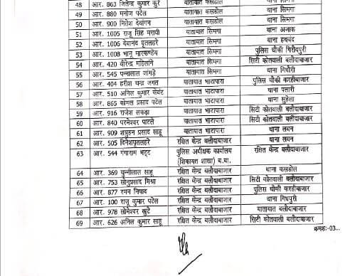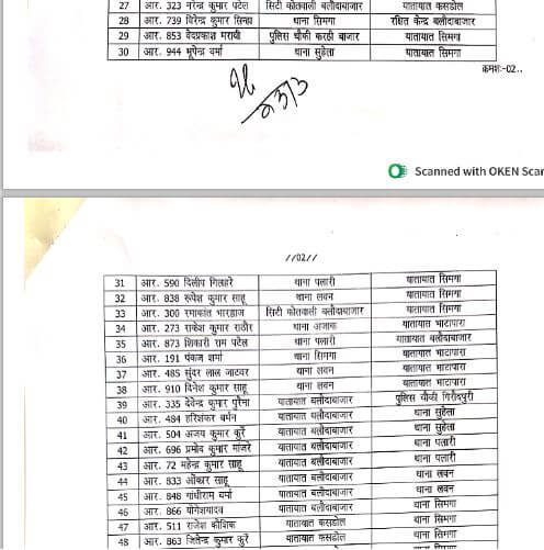 जारी आदेश के मुताबिक, 86 पुलिसकर्मियों में 4 निरीक्षक, 6 सहायक उपनिरीक्षक (ASI), 10 प्रधान आरक्षक और 66 आरक्षकों के नाम शामिल हैं। नगरीय निकाय और पंचायत चुनाव संपन्न होने के बाद पुलिस विभाग में बदलाव की अटकलें लगाई जा रही थीं, जिन्हें अब औपचारिक रूप दिया गया है।