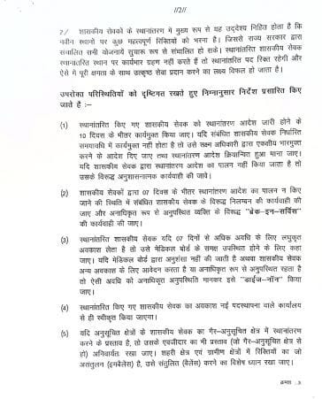 - स्थानांतरित किए गए शासकीय सेवक का अवकाश नई पदस्थापना बाले कार्यालय से ही स्वीकृत किया जाएगा।