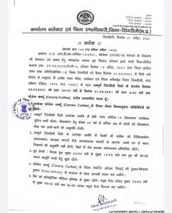 कलेक्टर ने दंड प्रक्रिया संहिता 1973 धारा 144 (1) के तहत एक बार फिर कोरोना कर्फ्यू बढ़ाने का निर्देश जारी करते हुए बताया कि अब 23 अप्रैल सुबह 6 बजे से 1 मई सुबह 6 बजे तक सम्पूर्ण जिले में कोरोना कर्फ्यू लागू रहेगा। सिंगरौली जिले में कर्फ्यू के दौरान टीकाकरण कार्यक्रम पर छूट रहेगी, जिसमें 45 वर्ष से ऊपर के लोगों को टीकाकरण केंद्र तक आने-जाने की परमिशन होगी। वही हॉस्पिटल और स्वास्थ्य कारणों जैसे आवश्यक कारणों के अलावा किसी भी व्यक्ति को घर से बाहर निकलने की अनुमति नहीं होगी और जिले में शेष समस्त आवागमन पर प्रतिबंध रहेगा। वही दूध डेरी, मिल्क बूथ सुबह 5:00 बजे से सुबह 10:00 बजे तक घर-घर जाकर देने के लिए खुले रहेंगे। फल-सब्जी के विक्रेता ठेले के माध्यम से सुबह 7:00 बजे से 11:00 बजे तक घर-घर जाकर सब्जी बेच सकते हैं। वहीं रेस्टोरेंट, होटल, किराना दुकान के लिए होम डिलीवरी के माध्यम से किराने और खाद्य सामग्री लोगों तक पहुंचा सकते है। प्रिंट और इलेक्ट्रॉनिक मीडिया इस प्रतिबंध से मुक्त होंगे और न्यूज़पेपर सुबह 5:00 बजे से 8:00 बजे तक घर घर जाकर वितरित कर सकेंगे।