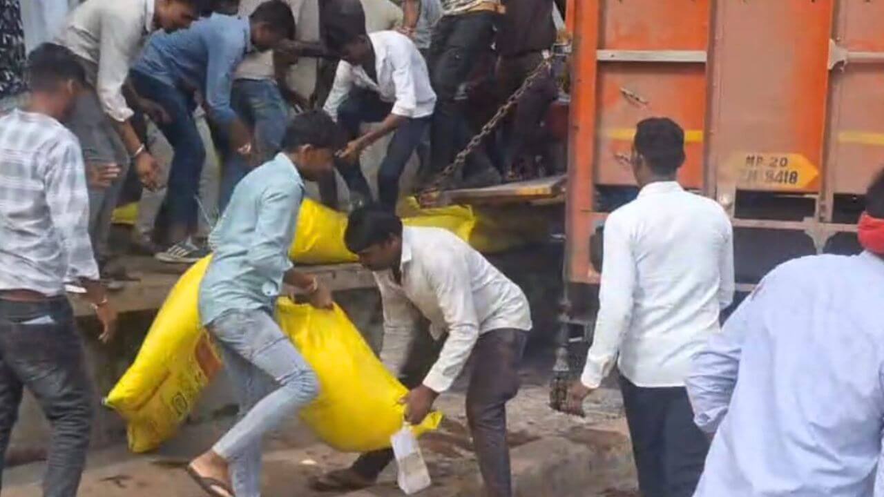 ट्रक से खाद की बोरियां लूट कर ले गए किसान