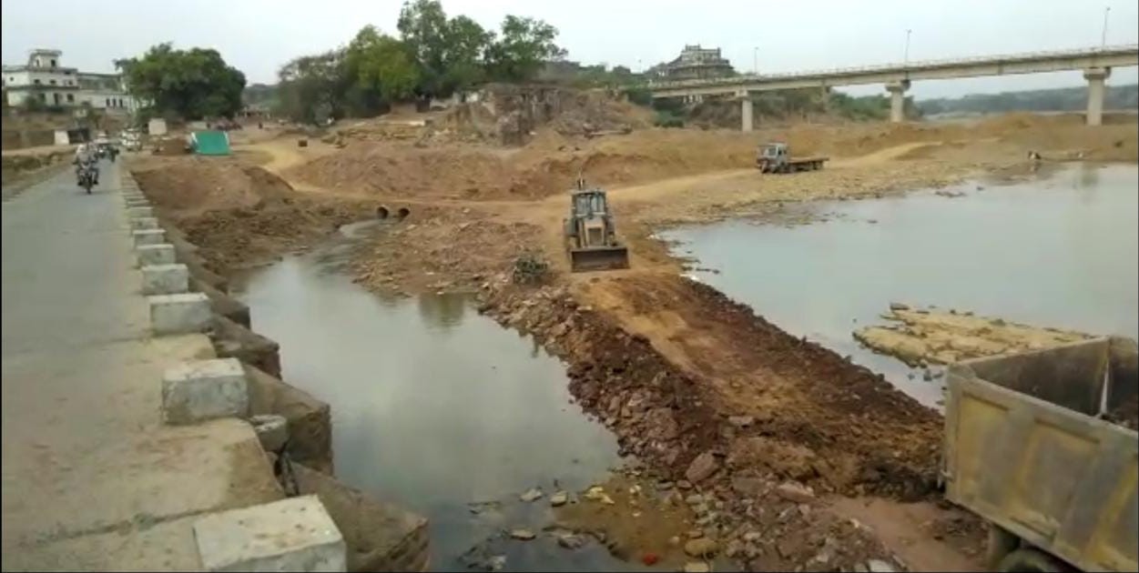 जल आवर्धन योजना प्रोजेक्ट के साथ साथ खनन माफिया हावी, रातों रात बना दिया कच्चा पुल