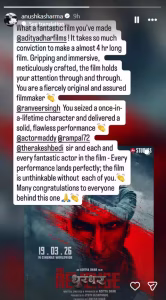 अनुष्का ने धुरंधर 2 की जमकर की तारीफ
