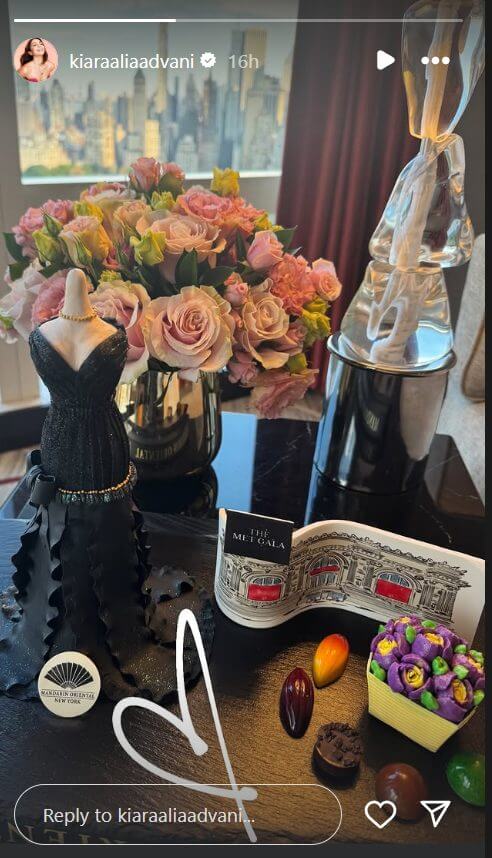 एक्ट्रेस कियारा आडवाणी की बात करें तो वह इस इवेंट के लिए न्यूयॉर्क पहुंच चुकी है। फैंस उनके रेड कार्पेट लुक को लेकर बेसब्री से इंतजार कर रहे हैं। सोशल मीडिया पर उन्होंने अपने आगामी इवेंट की एक झलक दिखाई है। जिसने फैंस का दिल जीत लिया है। बता दें कि अब अभिनेत्री का यह वीडियो तेजी से वायरल हो रहा है। जिसमें कई रंग-बिरंगी चीजों से सजी एक मेज दिखाई दे रही है, जिसमें गुलाबी गुलाबों का एक फूलदान, साथ ही एक छोटे आकार का केक भी शामिल है।