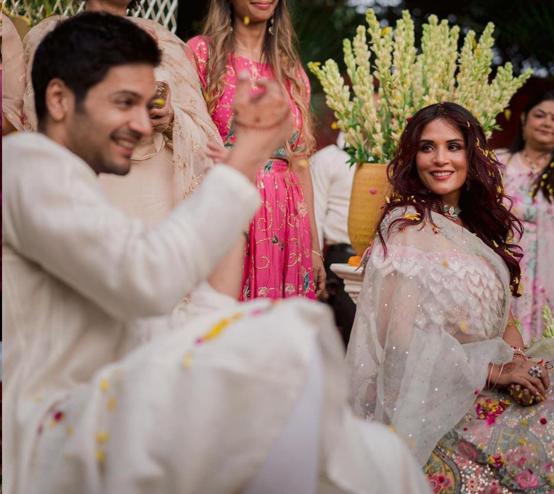 रिचा और अली की मेहंदी सेरेमनी लखनऊ में ही आयोजित की गई। अपने हाथों में अली के नाम की मेहंदी लगवाते हुए रिचा चड्ढा बहुत खुश नजर आ रही थी। दोनों की तस्वीरें तेजी से सोशल मीडिया पर वायरल हो रही है। हल्दी सेरेमनी के वक्त फैमिली उन पर फूलों की बारिश करते हुए भी दिखाई दे रही है।