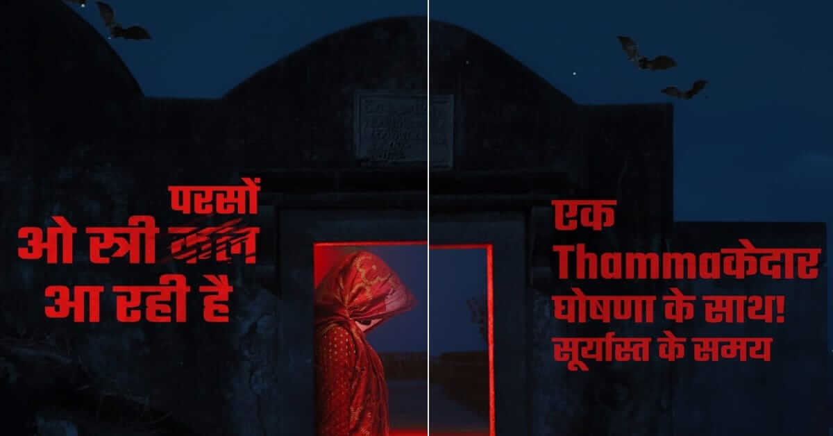 मैडॉक फिल्म्स ने अपने आधिकारिक इंस्टाग्राम अकाउंट से तीन पोस्ट शेयर करते हुए इस बारे में जानकारी दी है। इसमें स्त्री दिखाई दे रही है जिसमें कल को काटकर लिखा है ओ स्त्री परसो आ रही है। वहीं दूसरी पोस्ट में लिखा है एक धमाकेदार घोषणा के साथ सूर्यास्त के समय। तीसरी पोस्ट थामा की है, जिसमें हॉरर कॉमेडी के लिए डॉक्टर रश्मिका और आयुष्मान दिखाई दे रहे हैं।