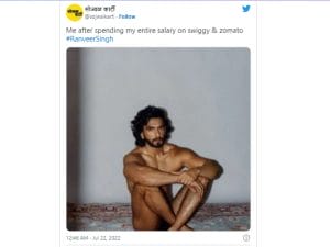 सोशल मीडिया पर रणवीर सिंह के न्यूड फोटोशूट को लेकर तरह तरह के मीम्स बनाए जा रहे हैं। फोटो सामने आते ही मीम्स की बाहर लग गई। किसी ने रणवीर से कहा है कि भाई क्या कर रहा है तू। तो किसी ने कहा है बस कर भाई।