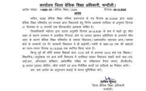 - बिहार के शेखपुरा जिला अधिकारी शेखर आनंद ने नर्सरी से कक्षा 5वीं तक के सभी सरकारी और निजी विद्यालयों में 31 दिसंबर तक शिक्षण कार्य पूरी तरह स्थगित कर दिया है। यह आदेश भारतीय नागरिक सुरक्षा संहिता, 2023 की धारा 163 के तहत लागू किया गया है। कक्षा 6 से ऊपर के छात्रों के लिए शैक्षणिक गतिविधियां सुबह 10:00 बजे से शाम 4:00 बजे तक संचालित होंगी।