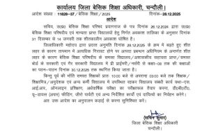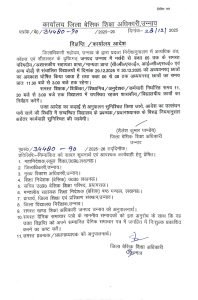 - मुजफ्फरनगर में 29 दिसंबर 2025 को कक्षा 1 से 8वीं तक के सभी स्कूल बंद रहेंगे । मऊ और चंदौली डीएम द्वारा कक्षा 8वीं तक के समस्त स्कूल 29 एवं 30 दिसंबर को बंद करने के निर्देश दिए गए हैं।
