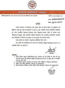 - लखनऊ में कक्षा प्री-प्राइमरी से कक्षा-12वीं तक संचालित सभी परिषदीय, प्राथमिक एवं उच्च प्राथमिक विद्यालय,सहायता प्राप्त विद्यालय व सभी बोर्डो से मान्यता प्राप्त विद्यालयों में 29 दिसंबर से 1 जनवरी 2026 तक अवकाश घोषित किया गया है।