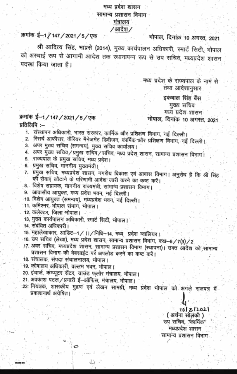 भोपाल, डेस्क रिपोर्ट। मध्य प्रदेश में शिवराज सरकार (shivraj government) ने बहुचर्चित स्मार्ट सिटी घोटाले (Smart city scam) मामले में IAS को उनके CEO पद से हटा दिया गया, अब उन्हें उप सचिव मंत्रालय के तौर पर अटैच (attach) किया गया है। बता दें कि मध्य प्रदेश के बहुचर्चित स्मार्ट सिटी घोटाले में स्मार्ट सिटी के CEO IAS आदित्य सिंह (IAS Aditya singh) को नोटिस (notice) भेजा था। IAS से 10 दिनों के अंदर जमीन नीलामी प्रक्रिया से जुड़ी जानकारी मांगी गई थी। वहीं अब इस मामले में संज्ञान लेते हुए तत्काल प्रभाव से उनके पद से हटा दिया है।
