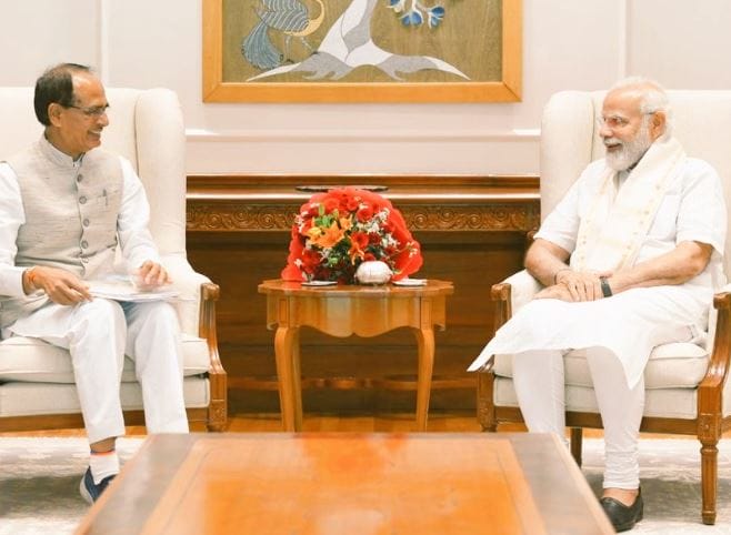सीएम शिवराज ने बताया कि आज प्रधानमंत्री नरेन्द्र मोदी जी से भेंट की और मध्यप्रदेश में चल रहे विकास और जनकल्याण के कार्यों की जानकारी दी। प्रधानमंत्री जी मैन ऑफ आइडियाज हैं। उनसे कई तरह के सुझाव और मार्गदर्शन प्राप्त हुआ है। उनको हम मध्यप्रदेश में क्रियान्वित करेंगे।मध्यप्रदेश में गेहूं का भंडार है। प्रदेश का गेहूं निर्यात हो उसके बारे में चर्चा हुई। मुझे खुशी है कि 2.40 लाख मीट्रिक टन गेहूं निर्यात के लिए जा चुका है। हमने एक्सपोर्ट सेल बनाया है जो निरंतर कार्य कर रहा है। लगभग 20 लाख मीट्रिक टन और एक्सपोर्ट हो सकता है उस पर भी चर्चा हुई। मध्यप्रदेश में हम हर माह में 1 दिन रोजगार दिवस का आयोजन करते हैं। हमारा प्रयास होता है कि हम कम से कम 2 लाख स्वरोजगार के अवसर उपलब्ध कराएं।